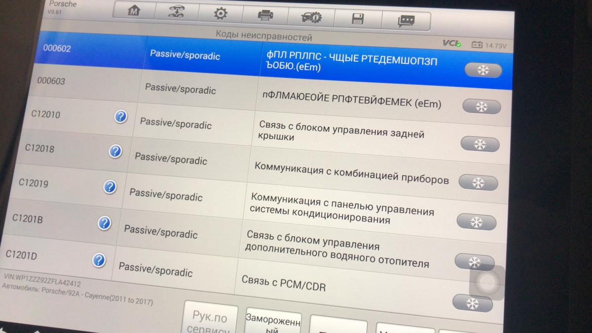 92A производство 2011>>2018 (K;L) Ошибки на панели Cayenne S Tiptronic (92AAH1)
