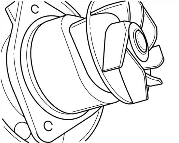 3 Приводное колесо водяного насоса повернуть так, чтобы можно было достать до крепежных болтов через отверстия в ременном шкиве -стрелки-.