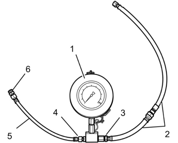 3.2 Дать двигателю поработать в течение нескольких минут. Выключить двигатель. Проверка падения давления. Падение давления топлива после выключения зажигания не должно быть выше 1 бара через 1 час. Следить за тем, чтобы сама конструкция инструмента не давала утечек и не имела негерметичностей (даже малейших). Давление топлива очень быстро снижается и искажает результат измерения уже при наличии малейшей утечки.