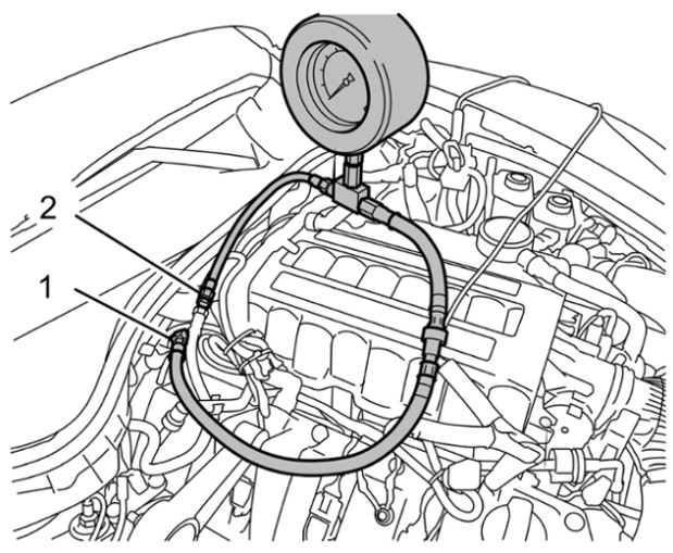 Остаточное давление топлива в течение 1 часа должно упасть не более чем на 1 бар (1000 мбар).