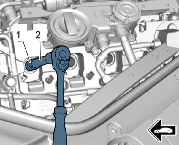 Вкрутить свечи зажигания с помощью VAS 6919 - насадки свечного ключа, размер 14-1- и затянуть с предписанным моментом затяжки.