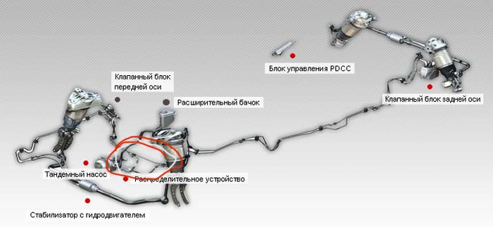 Сразу поехал в гараж, спустился в яму и обнаружил, что шланг, идущий от распределительного устройства, течёт, в том числе при работе пневмы (перевод в режим бездорожья/загрузки). Далее заглянул в бачок и обнаружил, что жидкость практически вытекла. Заехал в магазин, купил CHF 202, долил, с трубки немного продолжает капать, но ошибка так же возникает при резких поворотах.