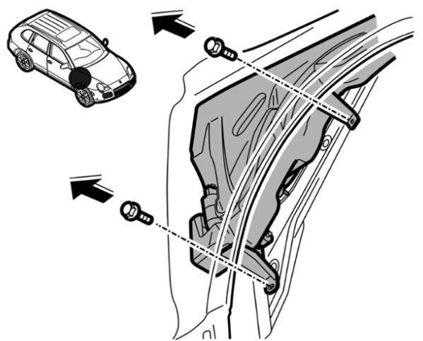 2 Открыть крышку заливной горловины расширительного бачка ОЖ и выкрутить находящийся под ней винт. Снять заливную горловину с расширительного бачка ОЖ и извлечь из бачка стеклоомывателя.
