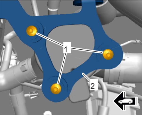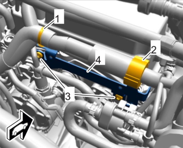 2.2 Вывернуть крепежные винты, -3- снять держатель жгута проводов двигателя -4-.