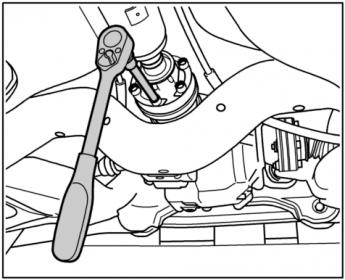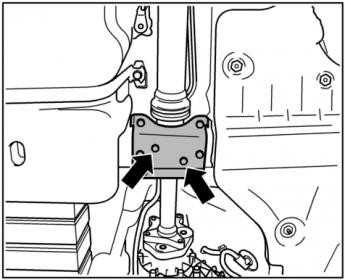 – Выкрутить 3 нижних крепежных болта заднего карданного вала на задней главное передаче.