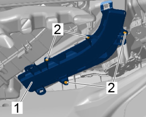 Если при демонтаже фиксатор сломается, то накладку -1- можно прикрутить в отмеченных штамповкой точках. Для этого использовать соответствующие винты -2- (см. каталог запасных частей).