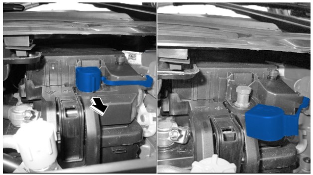 3.2 Подключить минусовой кабель зарядного устройства к точке соединения массы для запуска двигателя от внешнего источника.