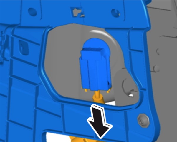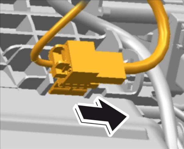 2 Разблокировать и отсоединить оба электрических разъема модуля подушки безопасности переднего пассажира.