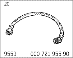 Шланг манометра. Не перепутать с -G- . В адаптере для топливной рампы установлена скоба, открывающая промывочный клапан при проверке.