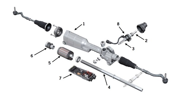 На иллюстрации ниже на примере Macan показанa конструкция системы рулевого управления.