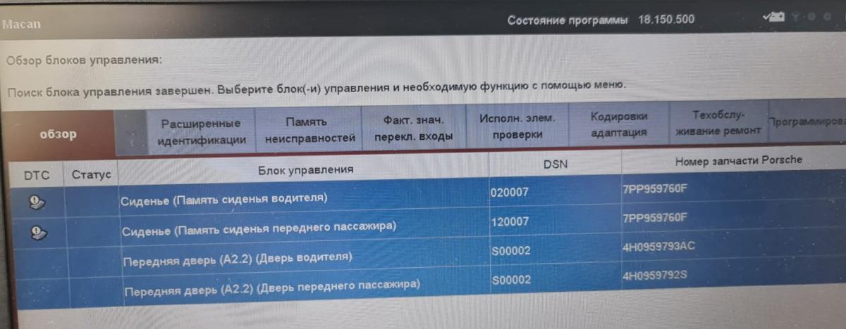 3 В разделе Обзор выбрать блок управления Функция памяти положения сиденья водителя/переднего пассажира . Нажать F12 . Следует создать протокол анализа автомобиля (FAP)? Затем нажать клавишу F11 .