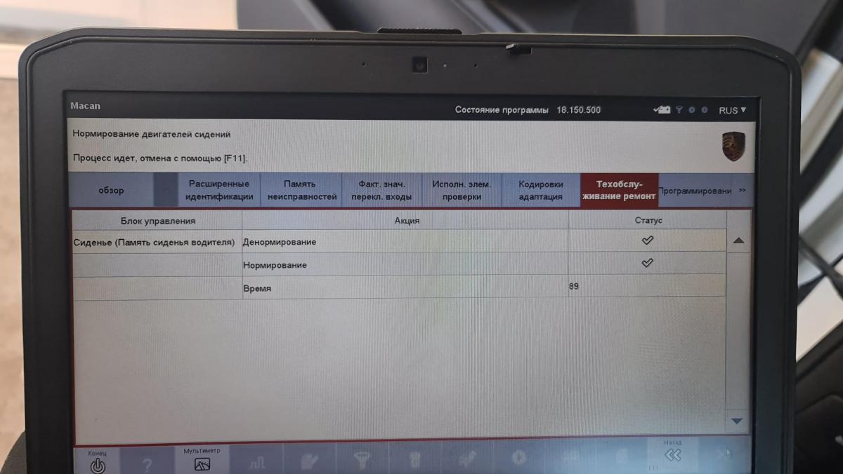 8 Выбрать Нормирование двигателей положения сиденья . Нажать клавишу F12 и запустить с помощью клавиши F8 .