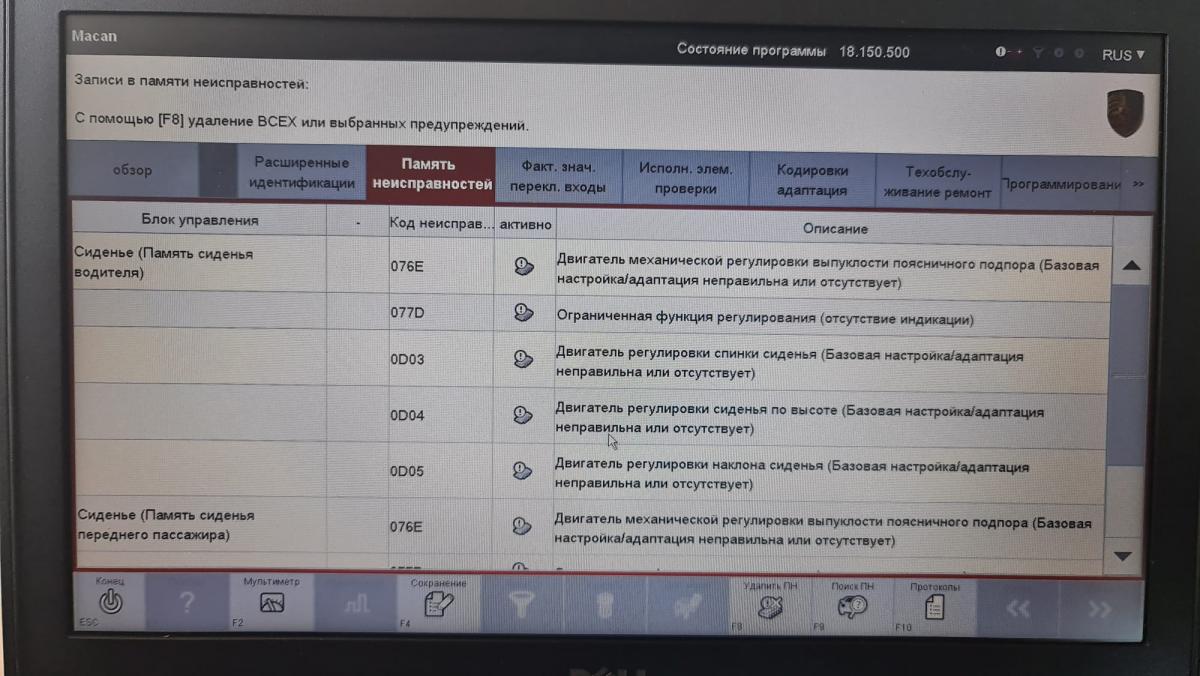 10 Считать память неисправностей , при необходимости, обработать и удалить имеющиеся неисправности.