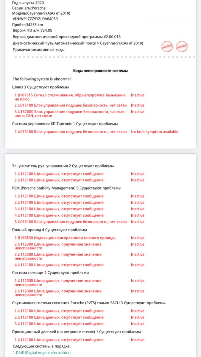 9YA производство 2018>>2024 (D) Cayenne 2020 нет связи с блоком SRS Cayenne Coupé (9YBAA1)