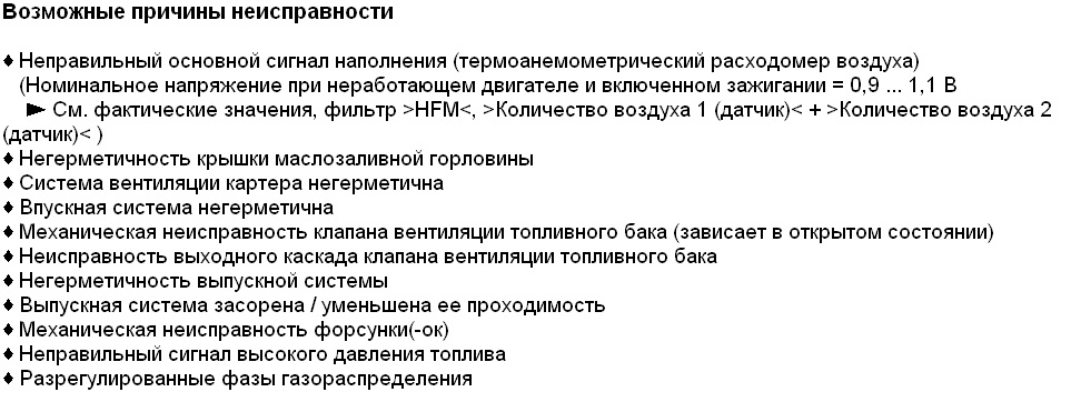 10. Если диапазоны 1 и 2 находятся вне пределов допуска, то следует считать память неисправностей и устранить причины.