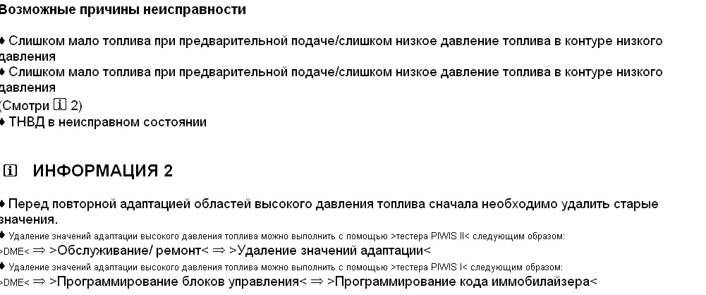 При замене одного из следующих компонентов системы смесеобразования >> блок управления DME (DFI) и/или насос высокого давления (также при замене двигателя) << необходимо снова провести адаптации блока управления DME (DFI) к системе.