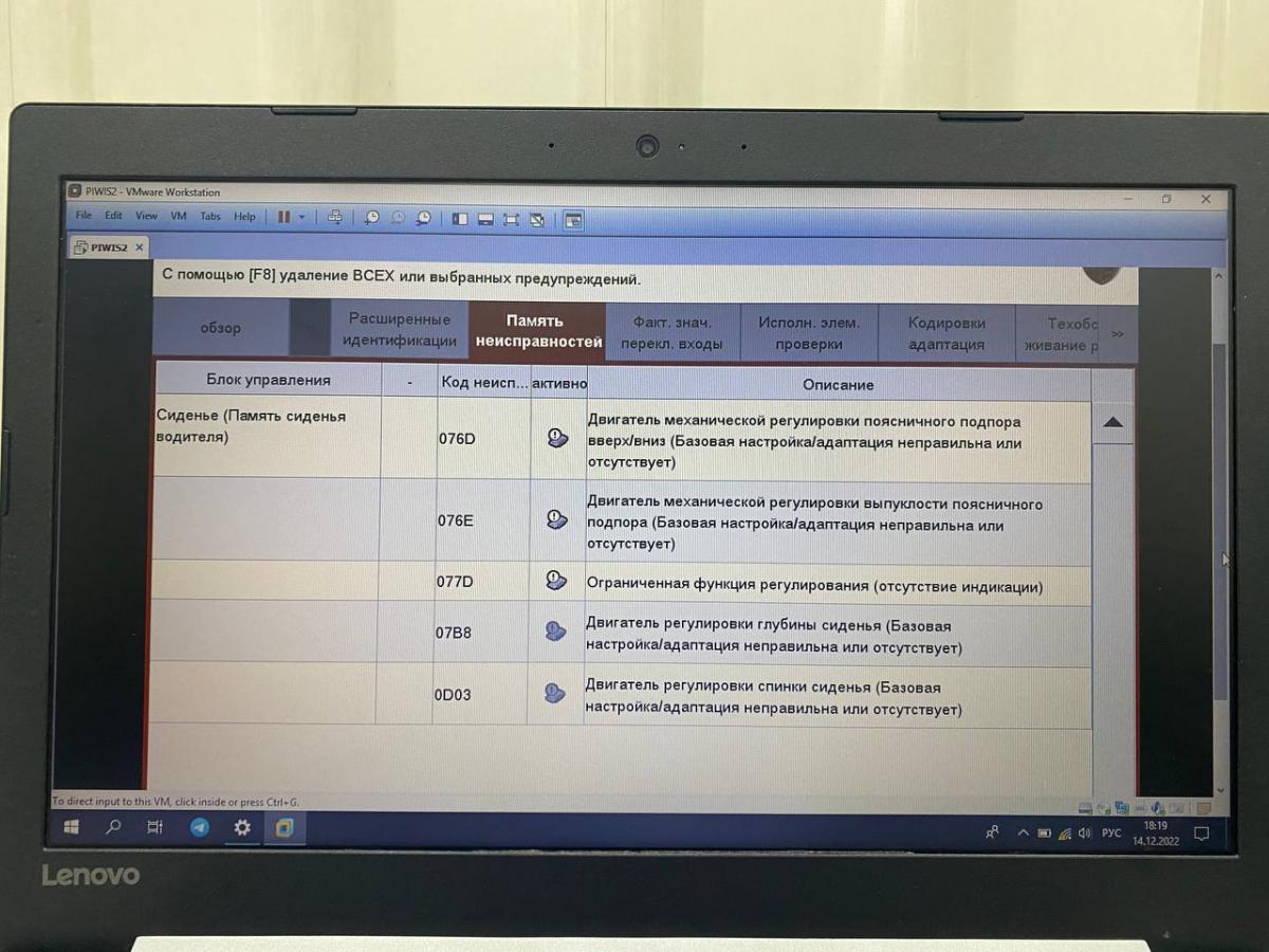 передние сиденья с коленной поддержкой и памятью. Не работает коленная поддержка и поддув поясницы (круглый переключатель) на обоих сиденьях. При этом перемещение сиденья и спинки работает. Также не работает память сидений и сиденье водителя не отъезжает назад при включении комфортного выхода из салона (руль поднимается, а сиденье не отьезжает).