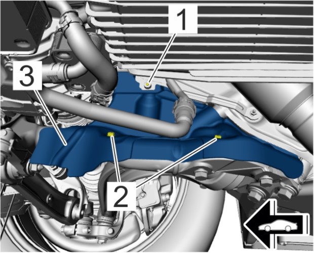 4.1 Выкрутите винты -1 и 2- и извлеките теплозащитный экран -3-.