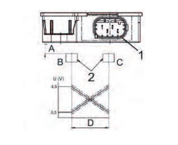 На педали тормоза находится постоянный магнит, который при задействовании тормоза обводится на датчике хода педали. В датчике в рамках диапазона измерений находится два датчика Холла, которые при обводе магнита вызывают соответствующее выходное напряжение (эффект Холла). На основании этого сигнала регулируется рекуперация.