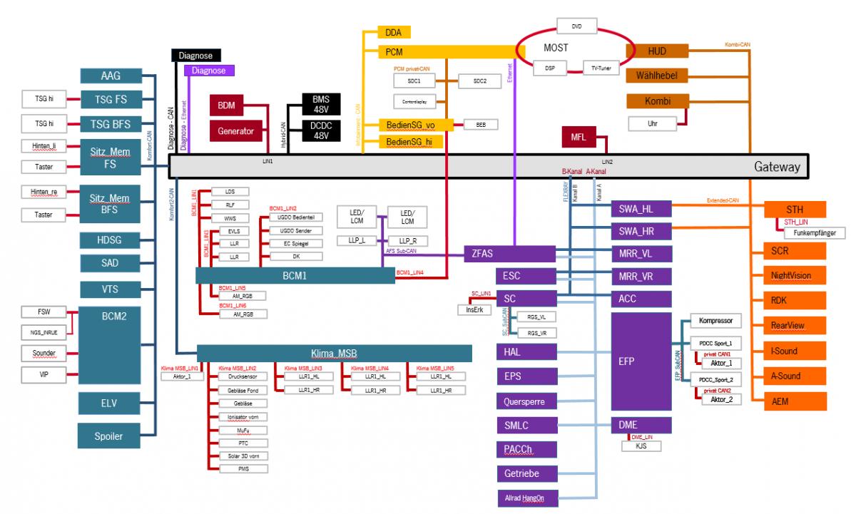 - расширенная «шина Flexray-Bus» (канал A и B) и Ethernet;