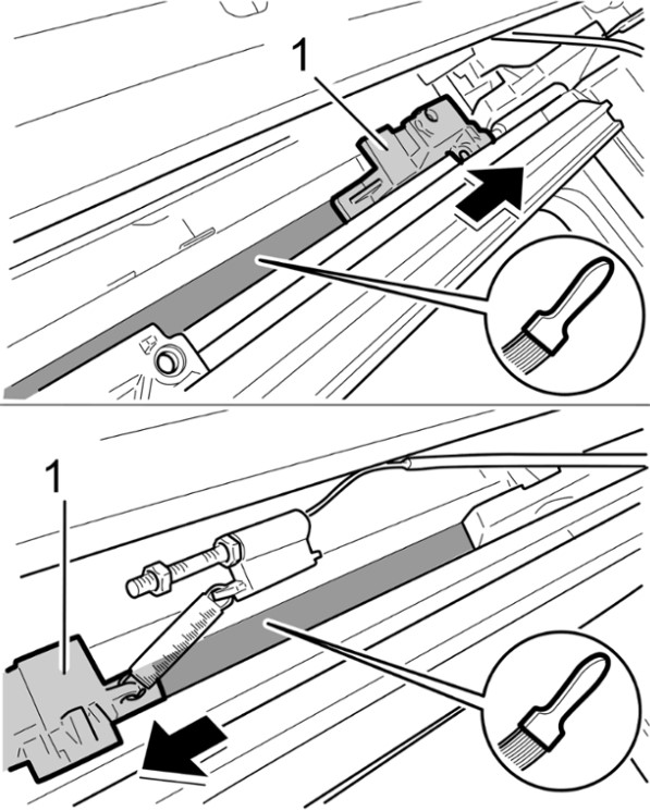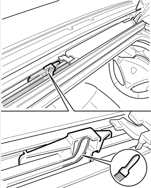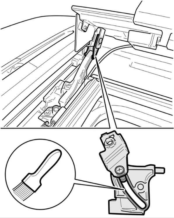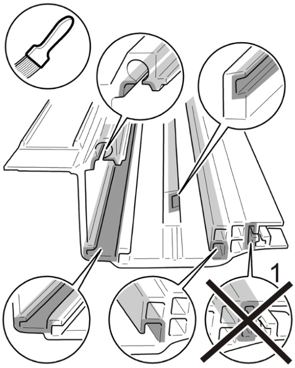 Перед смазыванием уплотнителей, кромок, направляющего механизма и направляющих шин, соответствующие места необходимо тщательно очистить от загрязнений.