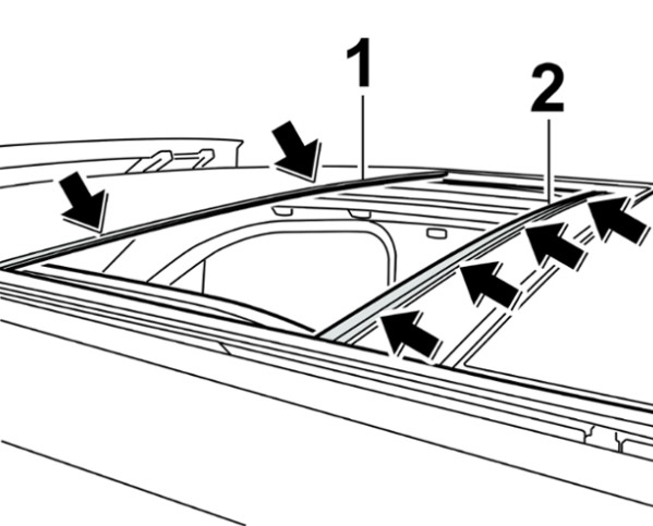 Пока разбирал потолок, обратил внимание на "люфты" больших сдвижных стекол панорамы. Люфтят получается что задние стенки/края больших стекол, которые отодвигаются. Передние края этих же самых стекол стоят на месте жестко.