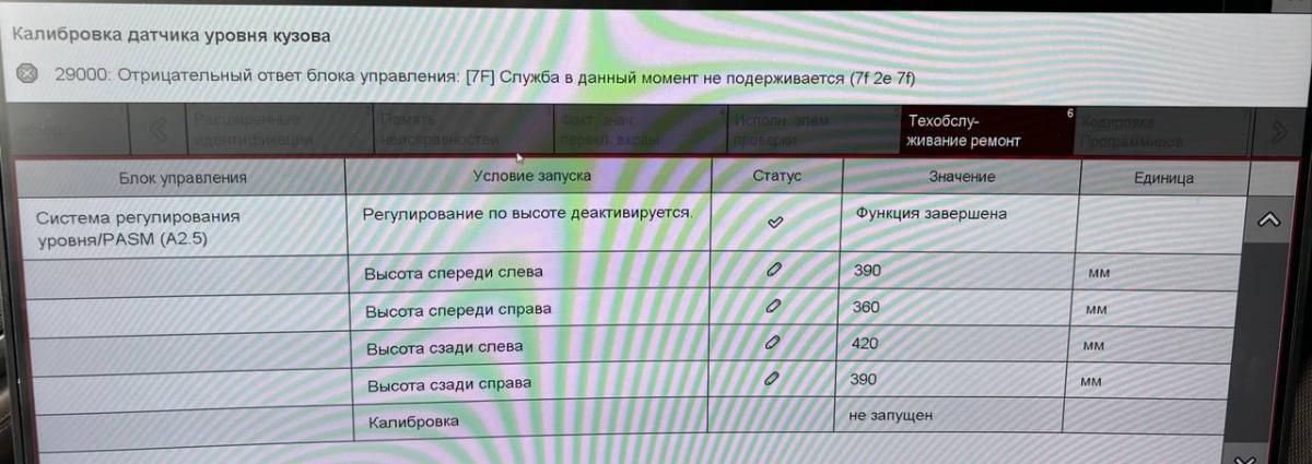 Также почему то не могу откалибровать пневму, прохожу тест, ввожу значения, жму калибровка и выходит ошибка сверху. Хотя в самом блоке ошибок нет.