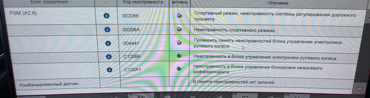 В этот момент какие неисправности активные в блоках управления DME, АКПП, PSM, блок управления электроники рулевого колеса?