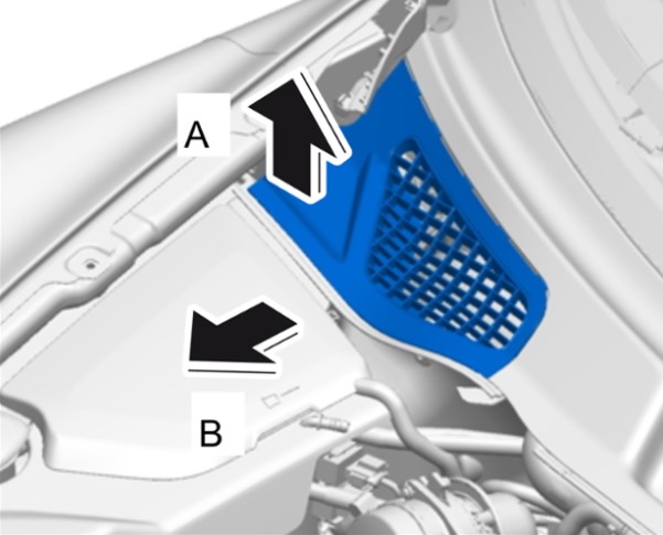 2 Поднять защитную крышку справа -A- и отсоединить ее движением вперед -B-.