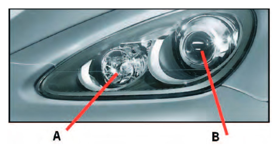 Модели Cayenne вплоть до Cayenne Turbo серийно оснащены основными фарами H7 с автоматическим статическим корректором фар, который базируется на проекционной технике, кроме того они имеют функцию автоматического освещения и отключения с функцией возвращения домой. При проекционной технике свет, исходящий от источника света, с помощью рефлектора и линзы проектируется на дорогу и обеспечивает равномерное освещение, при этом снижается вероятность ослепления водителей встречного транспорта.