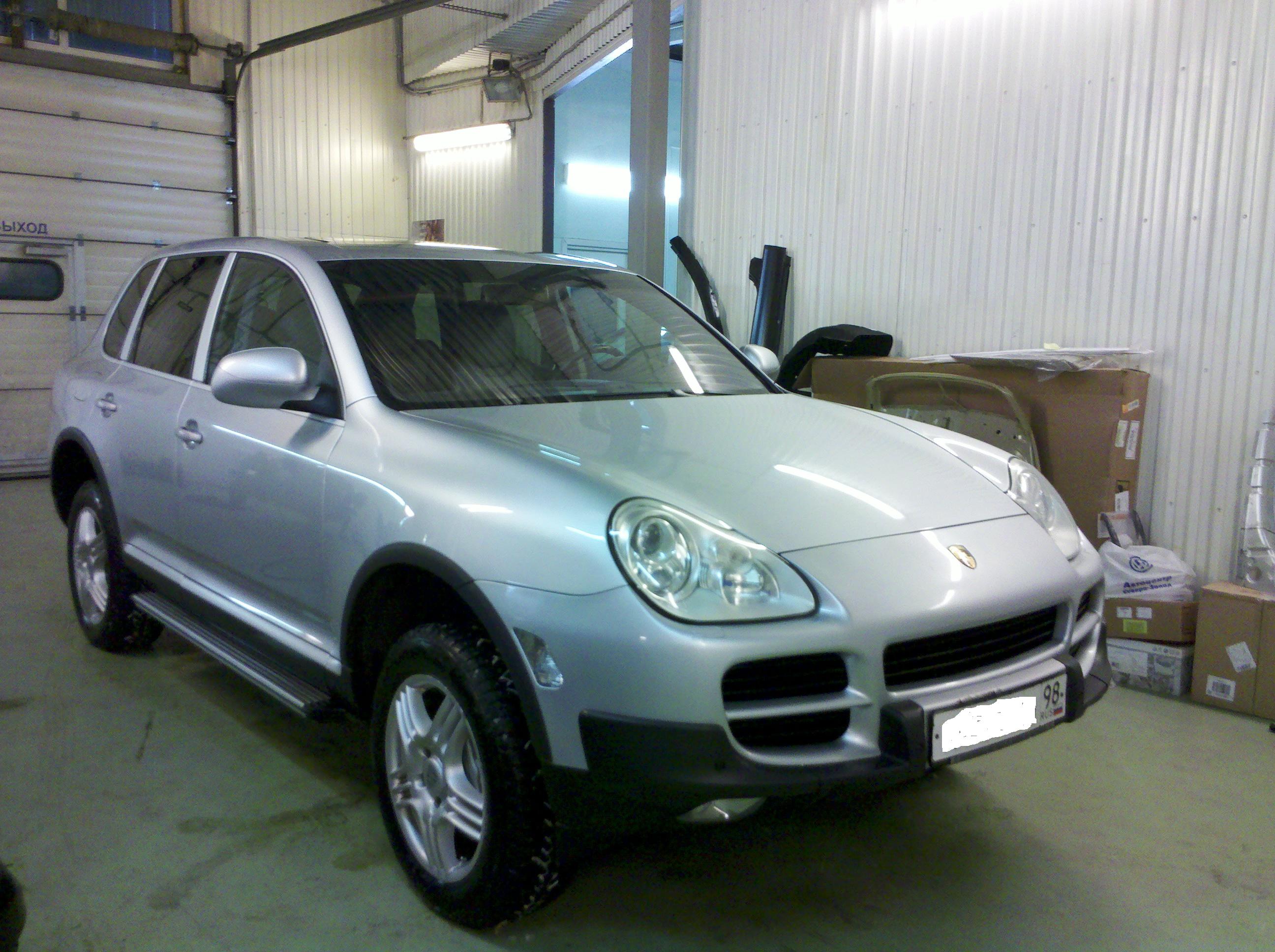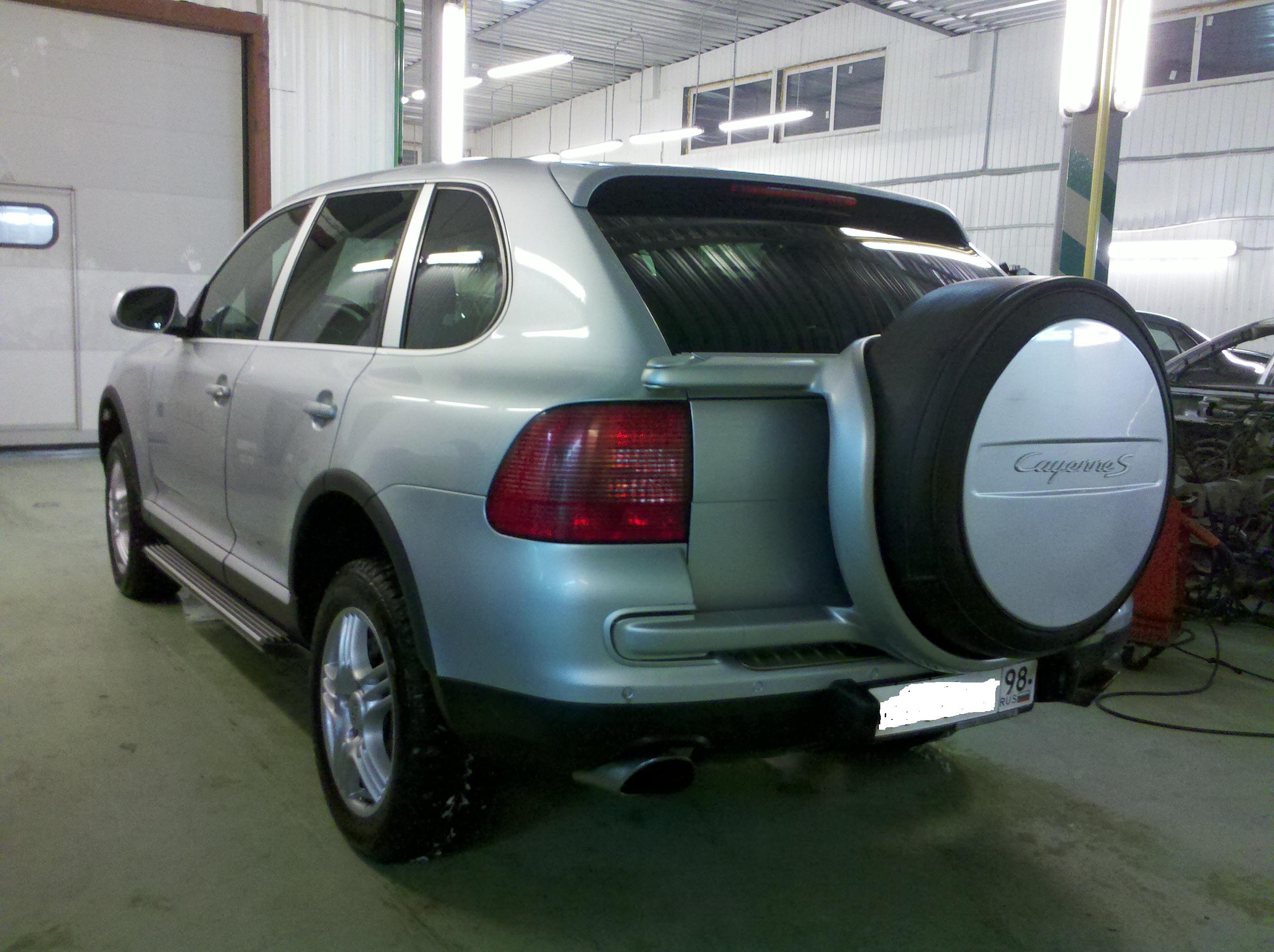 Porsche Cayenne S 2003 (по PET - 2004) из Германии в 2007, 4,5 литра, пробег – 122 000 км, серебристый, регулируемая высота пневмоподвески (5-ть положений), блокировка межосевого дифференциала, внедорожный обвес (молдинги, пороги), запасное полноразмерное колесо, система Webasto, адаптер для подключения и управления через штатную систему проигрывателя iPod, спутниковая сигнализация Аркан + 2 ммобилайзера. Заменены старые детали на оригинальные новые:
