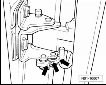 – Смазать фиксатор дверей в местах, указанных -стрелками-.