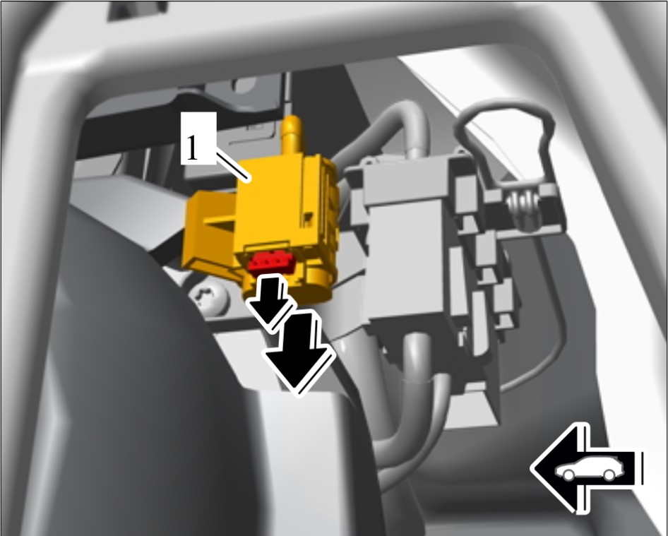 3 Подсоединить и заблокировать высоковольтный провод на высоковольтной АКБ -1-.