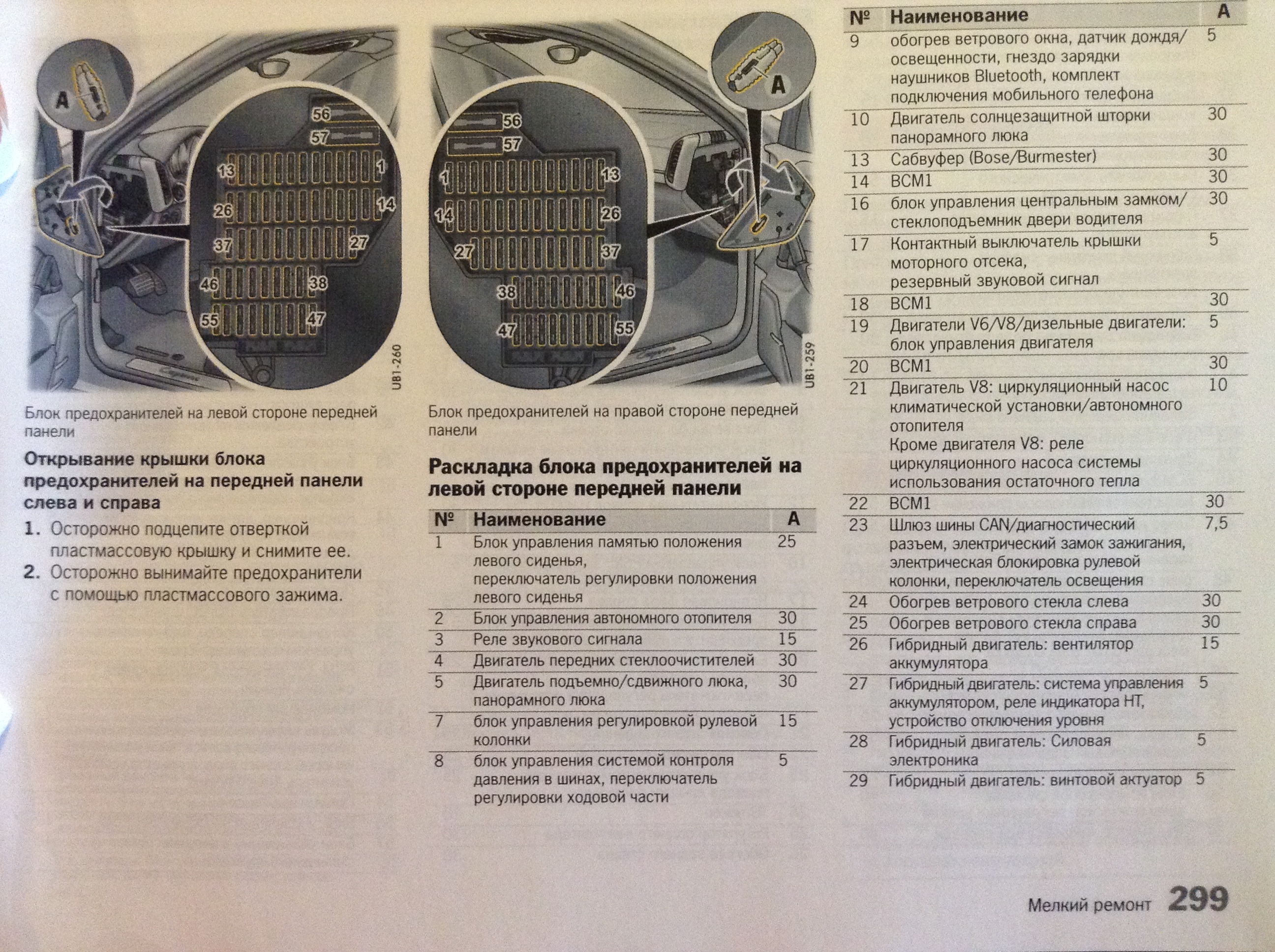 блок предохранителей с правой стороны торпедо, верхний ряд