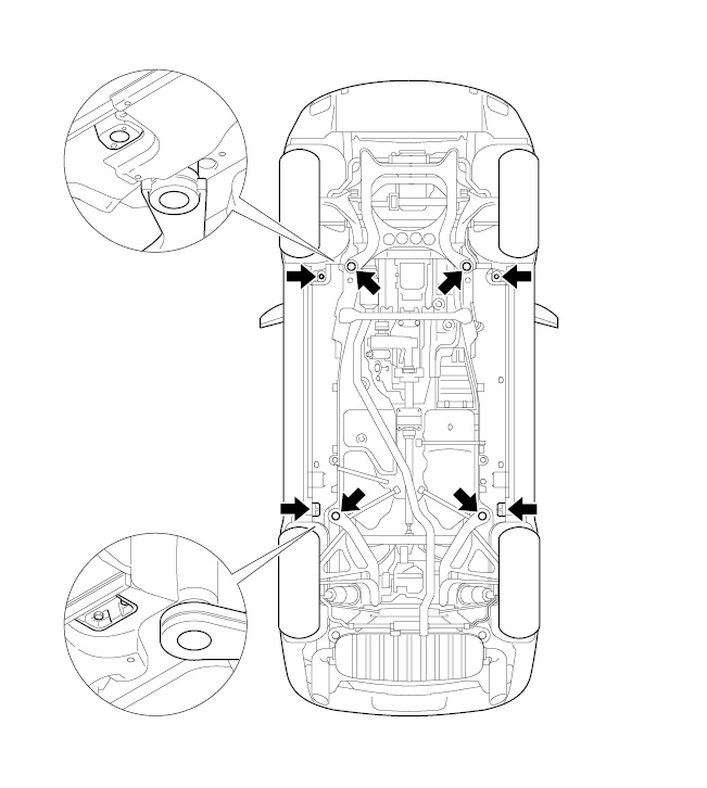 Поднимать автомобиль только с опорой в предусмотренных точках.