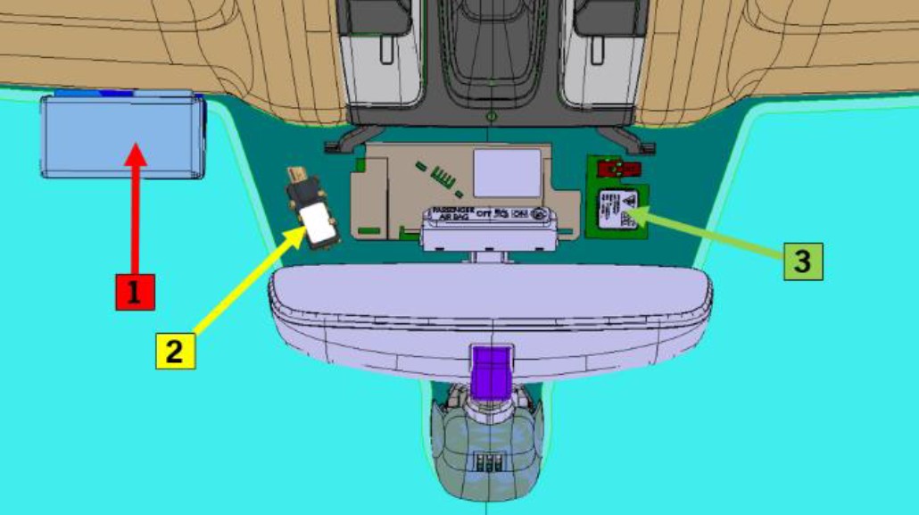 В зависимости от региональной комплектации и дополнительного оборудования в области ножки внутреннего зеркала заднего вида могут устанавливаться различные варианты антенн.