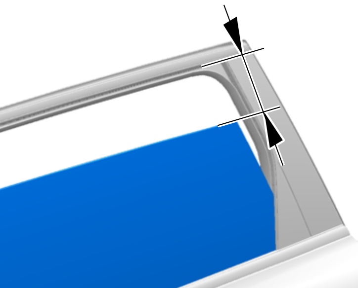 Опустить стекло задней двери на → Установочное значение: 200 mm+/-2 mm от верхней кромки стойки C двери автомобиля.