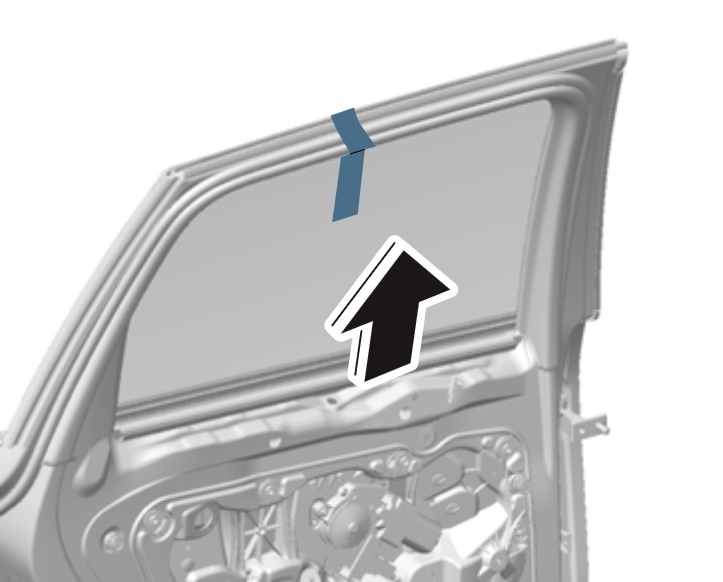2.1. Ввести стекло двери в зажимные колодки и следить за параллельным прилеганием стекла к направляющей в области стойки B.