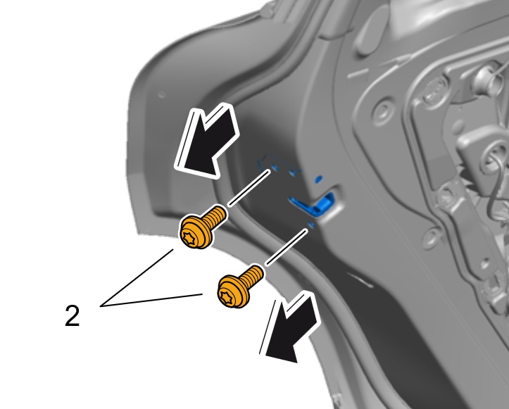 4.3. Вывернуть крепежные винты -2- на замке двери.