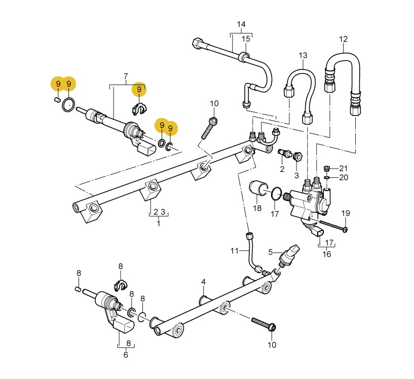 9PA1 производство 2007>>2010 (L) Замена уплотнительных колечек форсунок 3,6 FSI Cayenne (9PAAG1)