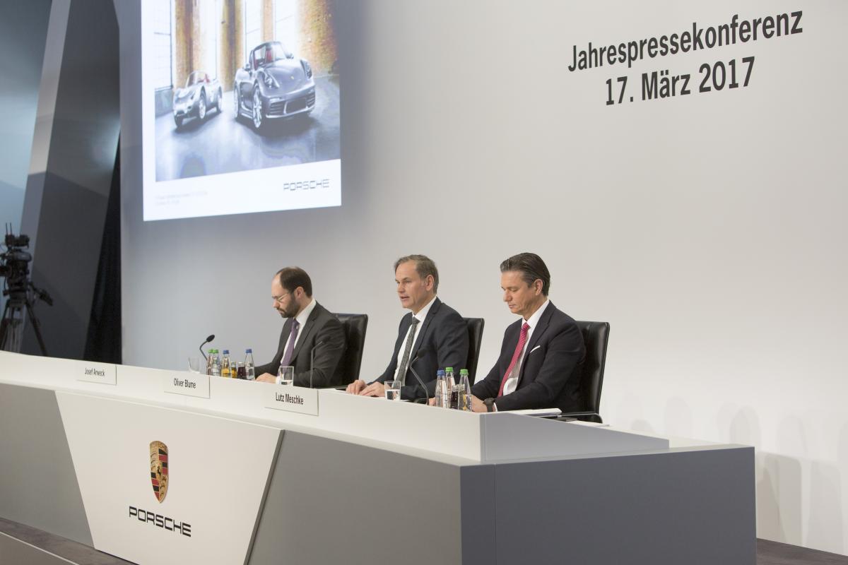 Лутц Мешке, заместитель председателя правления и ответственный за финансы и IT, подчеркнул: «При доходности с оборота свыше 17 процентов Porsche продолжает входить в число самых прибыльных автопроизводителей в мире. Ключом к успеху является наша уникальная продуктовая линейка и рациональная структура издержек». Кроме того, важный вклад в достижение рекордного результата внесла долгосрочная стратегия хеджирования валютных рисков. «В текущем 2017 финансовом году мы ожидаем умеренный рост объемов продаж и оборота, несмотря на существующие экономические и политические неопределенности в различных регионах мира. В том, что касается оперативного финансового результата, мы стремимся к значению на уровне прошлого года при условии стабильных курсов иностранных валют», – продолжил Мешке. «Новый Panamera даст дополнительный импульс, особенно плагин-гибридные версии и Sport Turismo», – сказал Блуме.