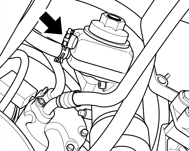 5. Привести держатель в монтажное положение. Вкрутить крепежные гайки держателя шлангов -стрелки- . → Момент затяжки: 8 Nm.