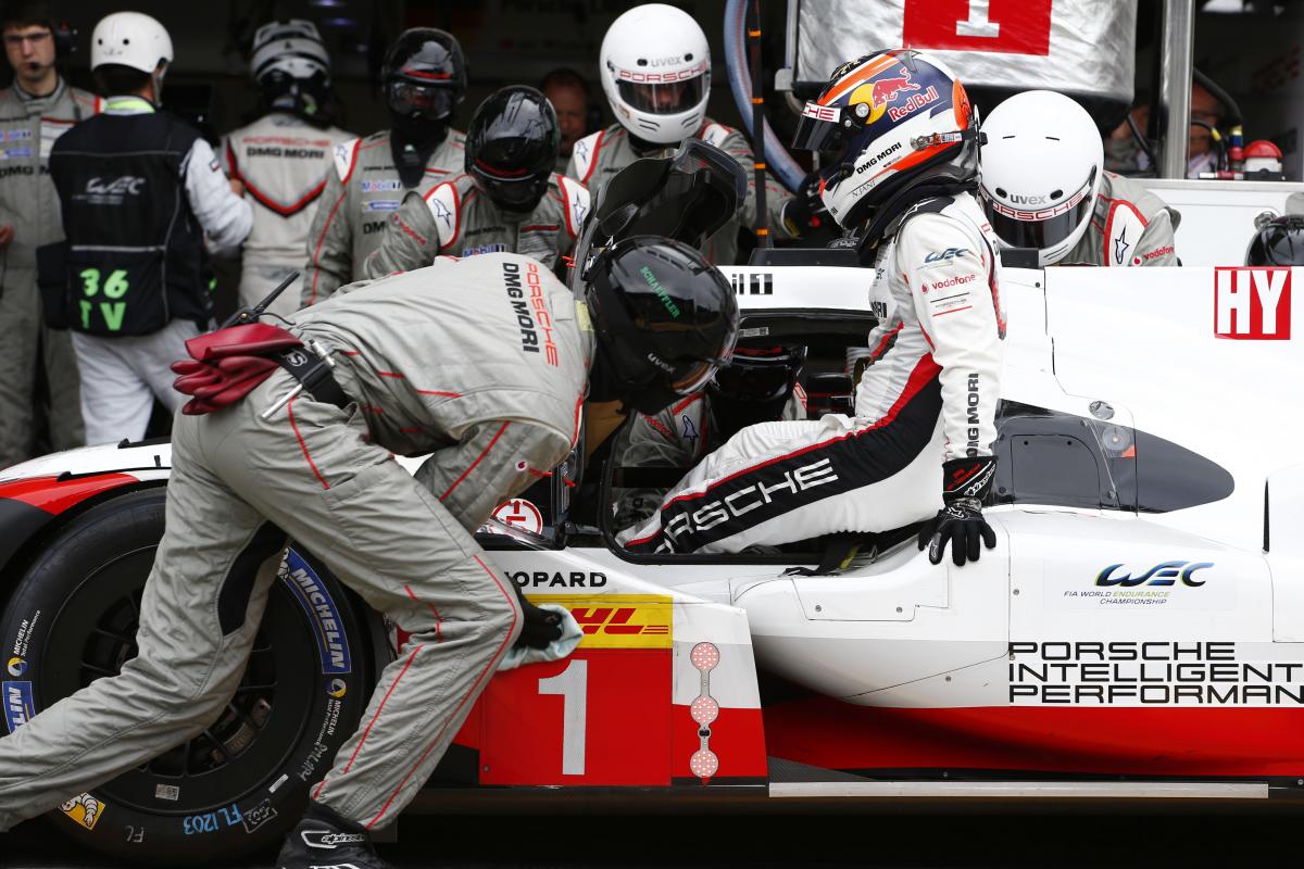 Андре Лоттерер стартует с третьей стартовой позиции и возвращается из первого круга на этой же позиции позади Toyota под номером 7 и вторым Porsche Тимо Бернхарда. После 24 кругов (46 минут) три ведущих автомобиля следуют в интервале одной секунды. Через 31 круг Лоттерера сменяет Нил Яни. После первого пит-стопа швейцарец – второй после Toyota. На 35-м круге Яни опять оказывается на третьем месте, после того как задержался в потоке между отстающими участниками и его смог обойти второй Porsche. На 46-м круге (14:22) швейцарец следует примеру другого командного 919-го и тоже обгоняет Toyota, таким образом, гонку возглавляют оба Porsche. После 64-го круга Яни уходит на дозаправку, на 69-м круге он обгоняет Брендона Хартли и становится новым лидером. После 97 кругов управление в ведущем автомобиле принимает на себя Ник Тэнди. На 123-м круге при обгоне у него происходит касание с Ford GT под номером 67, к счастью оба автомобиля продолжают движение. После пит-стопа с дозаправкой в конце 130-го круга Тэнди продолжает гонку на втором месте. На 135-м круге британец перехватывает лидерство у автомобиля своих коллег по команде. После 163 кругов в заключительной фазе гонки за руль лидирующего 919 Hybrid садится Лоттерер. Во время последнего для Porsche с номером 1 пит-стопа вперед в конце 196-го круга выходит лидирующий в чемпионате WEC другой командный Porsche. Лоттерер пресекает финишную черту вторым.