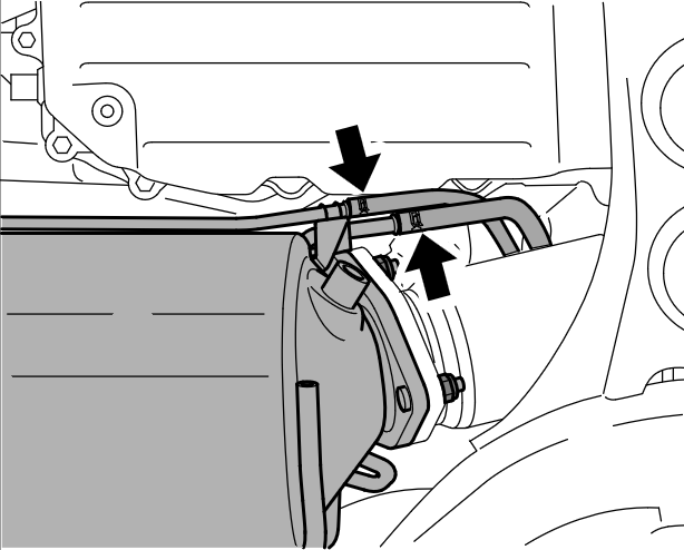3. Снимите соединительный шланг -стрелка- к датчику дифференциального давления с напорного трубопровода на сажевом фильтре.