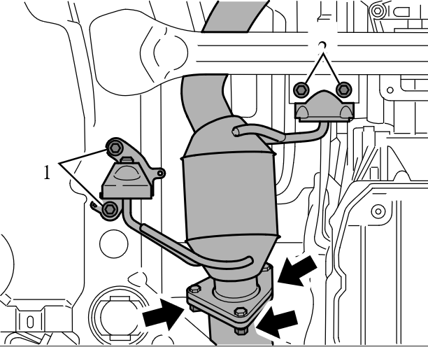 5. Отверните крепежные гайки -стрелки- и снимите сажевый фильтр.