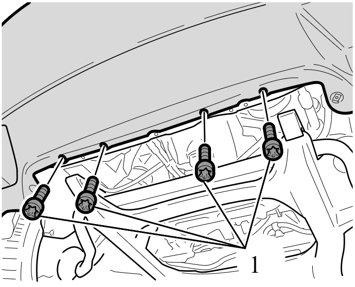 9.3. При необходимости ослабить верхние крепежные винты -1- и регулировать размеры зазоров смещением облицовки передн. части кузова. Затянуть верхние крепежные винты → момент затяжки: 3,5 Nm+/-0,5 Nm