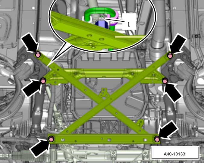 1.2. При снятии диагональной растяжки отсоединить трубопровод -1- .