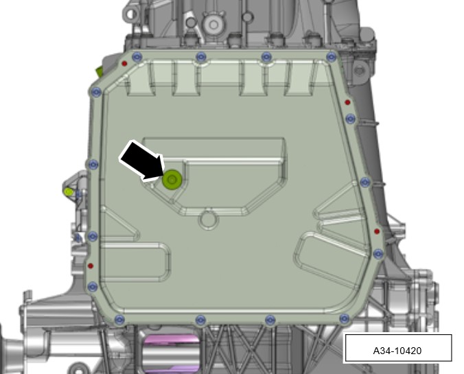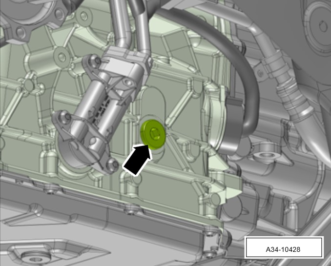 4. Установить резьбовую пробку отверстия для слива масла ATF -стрелка- вместе с новым уплотнительным кольцом и затянуть ее.