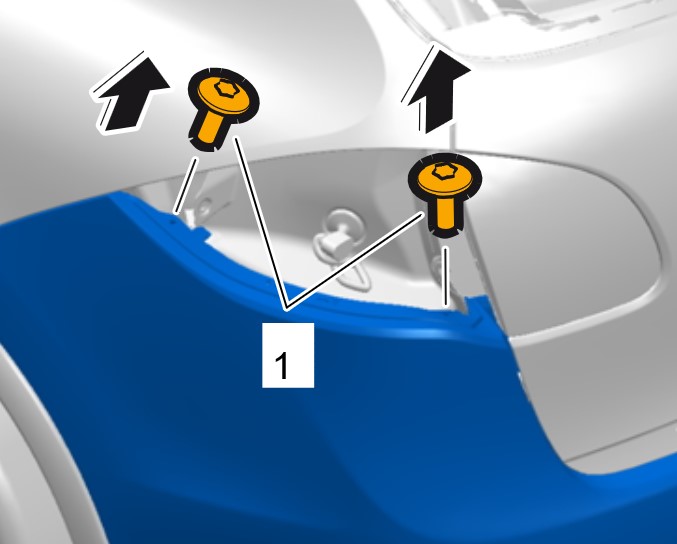 3. Вывернуть крепежные винты -1- из подкрылка.
