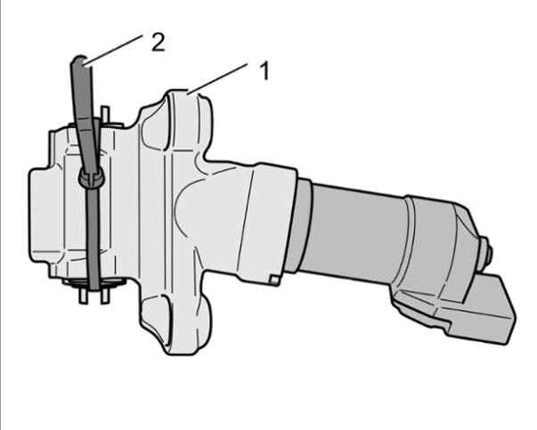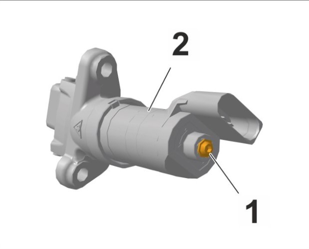 1 Выкрутить винт со сфероцилиндрической головкой -1- с задней стороны исполнительного механизма -2-.